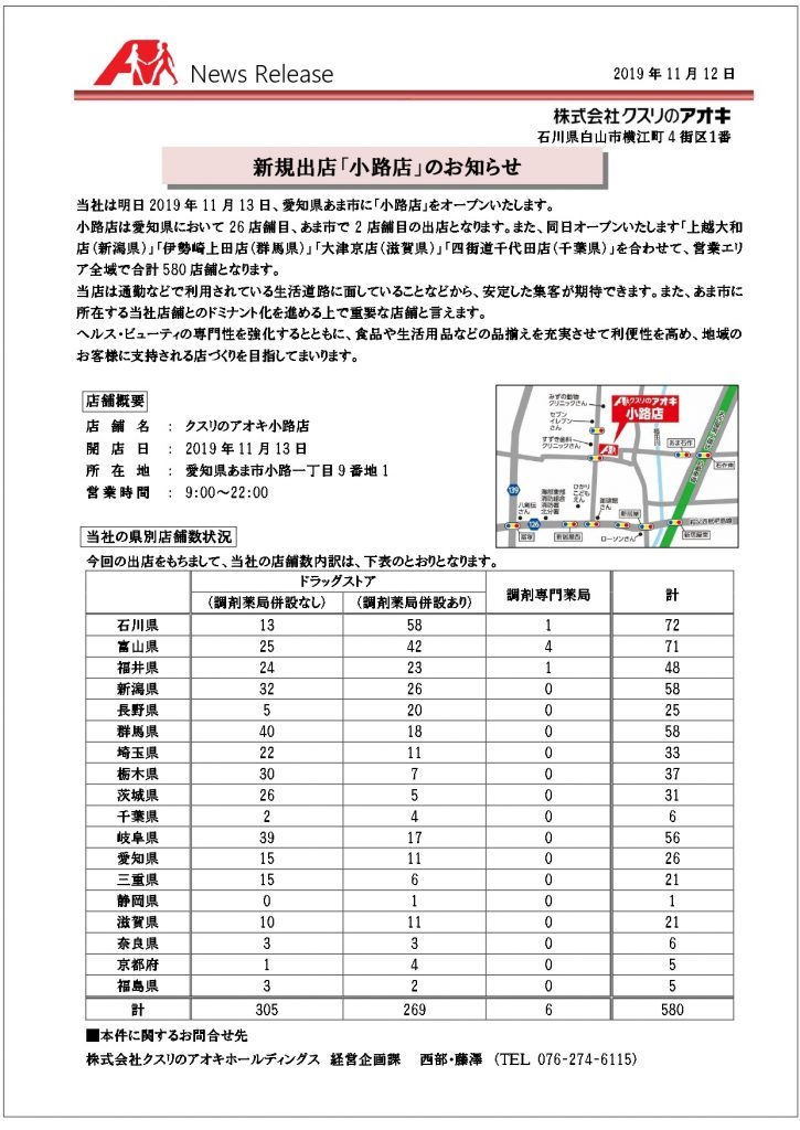 □11月13日、愛知県新規出店「小路店」