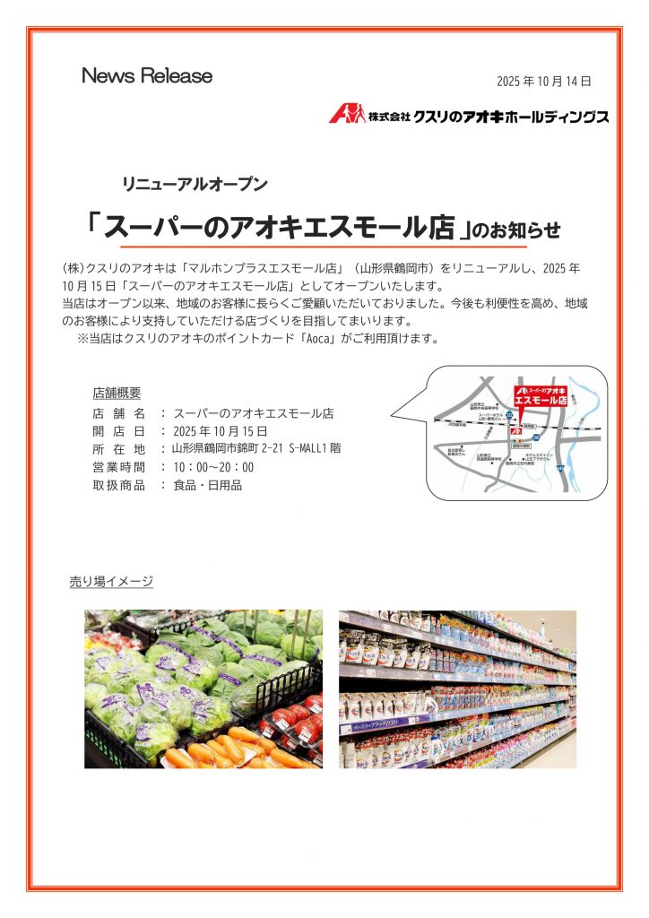 □10月15日、山形県リニューアルオープン「スーパーのアオキエスモール店」