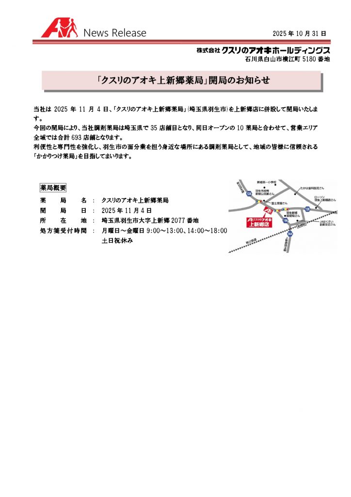 □11月4日、埼玉県新規開局「上新郷薬局」