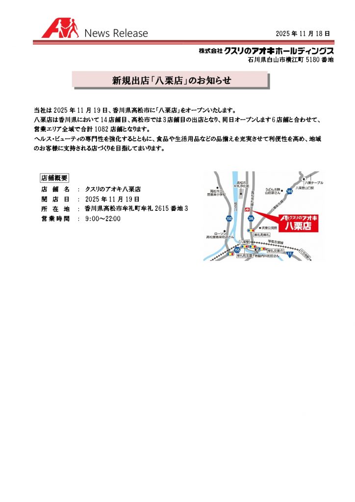 □11月19日、香川県新規出店「八栗店」