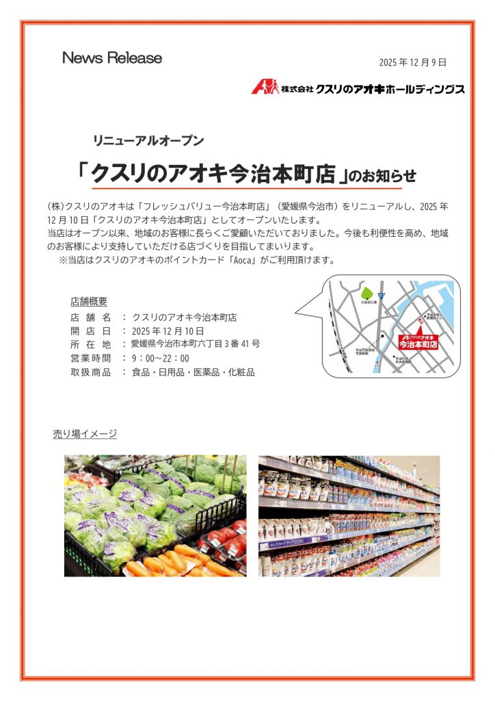 □12月10日、愛媛県リニューアルオープン「今治本町店」